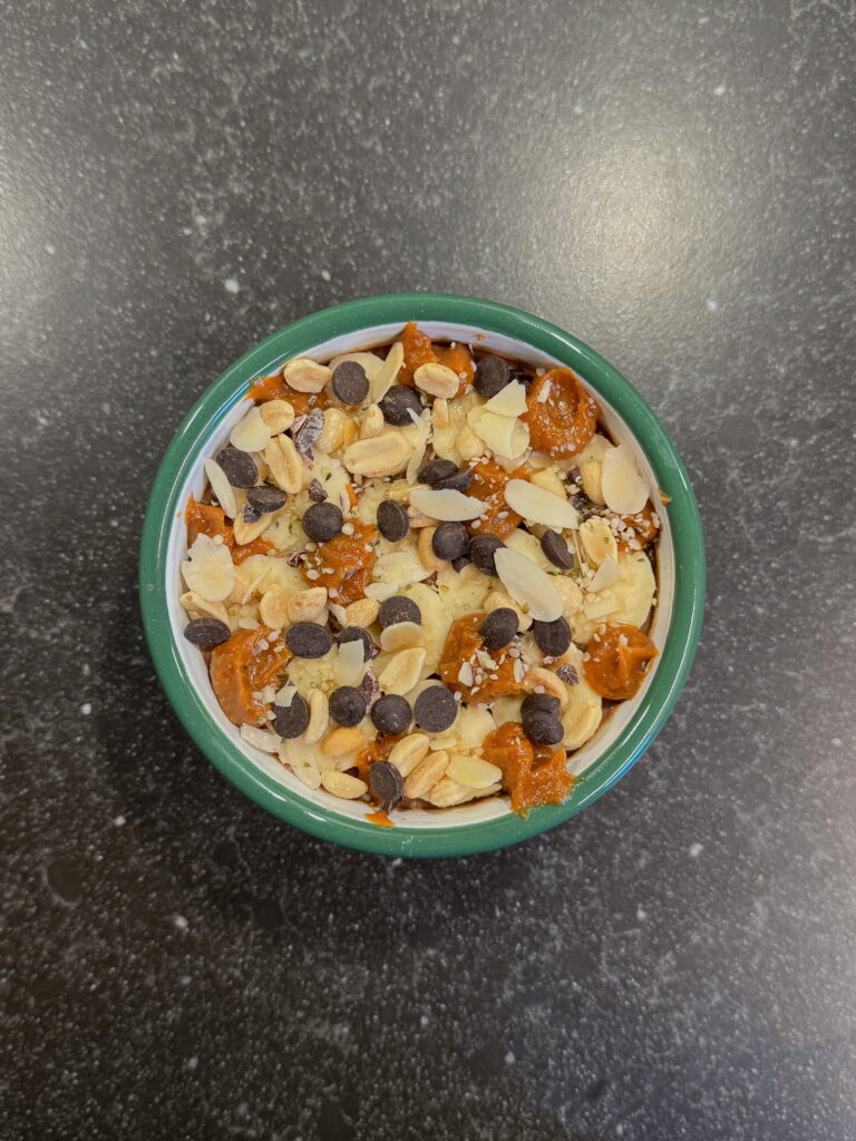 👉 Résultat : un porridge protéiné façon dessert Snickers, gourmand et équilibré, parfait pour le petit-déj’ ou la récup’ après sport 💪.